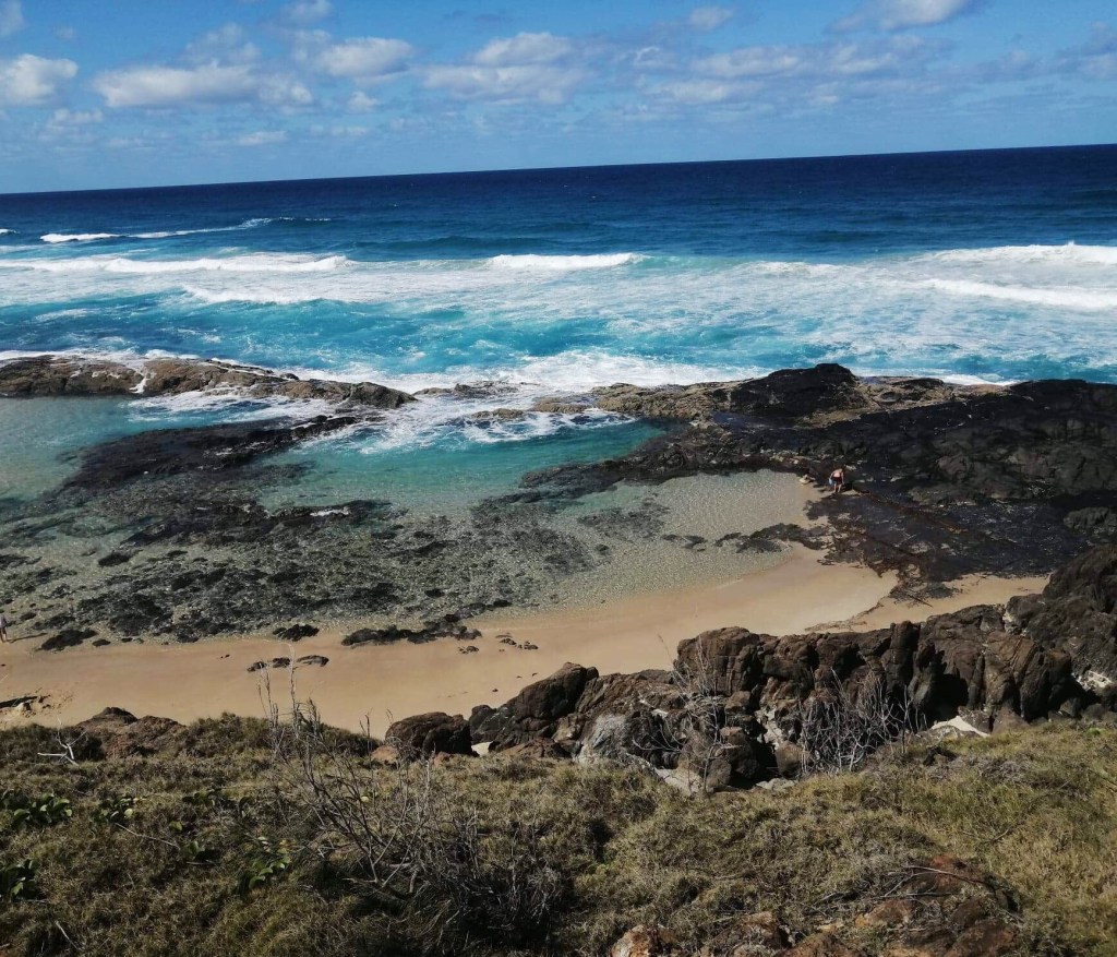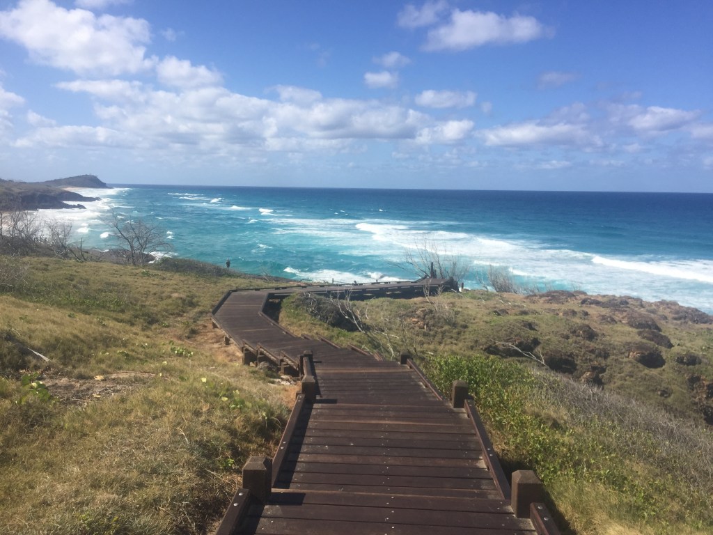 On a bien apprécié Fraser Island. L’épave du Maheno est un incontournable, la couleur du Lac Mackenzie est surprenante même sous un ciel gris et les Champagne Pools sont magnifiques. Chacun des arrêts a été autant apprécié que la route qui les sépare. Cheveux au vent, musique à fond et conduite à même le sable.