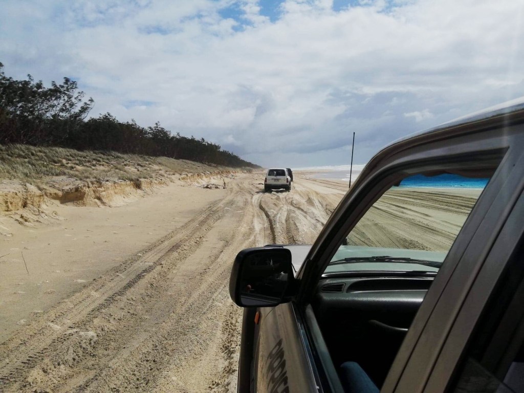 Avec le recul, je me rends compte que je recommande de faire Fraser Island par ses propres moyens. Le tour de 3 jours est très bien, mais j’aurais aimé faire plus que les incontournables, en visitant le lac Birrabeen par exemple. Et sans avoir de timing précis sur place. C’est le soucis avec les excursions, j’en reparlerais plus tard. Cela dit, il y a énormément de facteurs à prendre en considération pour visiter Fraser sans guide : la catégorie de 4×4, la pression des pneus, les marées, la technicité de la conduite sur le sable… On peut facilement s’enlisés ou rester coincés entre des rochers et l’océan. Donc l’idéal d’après moi serait d’y aller au minimum avec deux 4×4, que l’un puisse dépanner l’autre en cas de problème. Et entraînez vous à la conduite sur le sable à Rainbow Beach avant de partir.