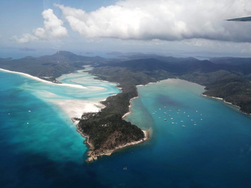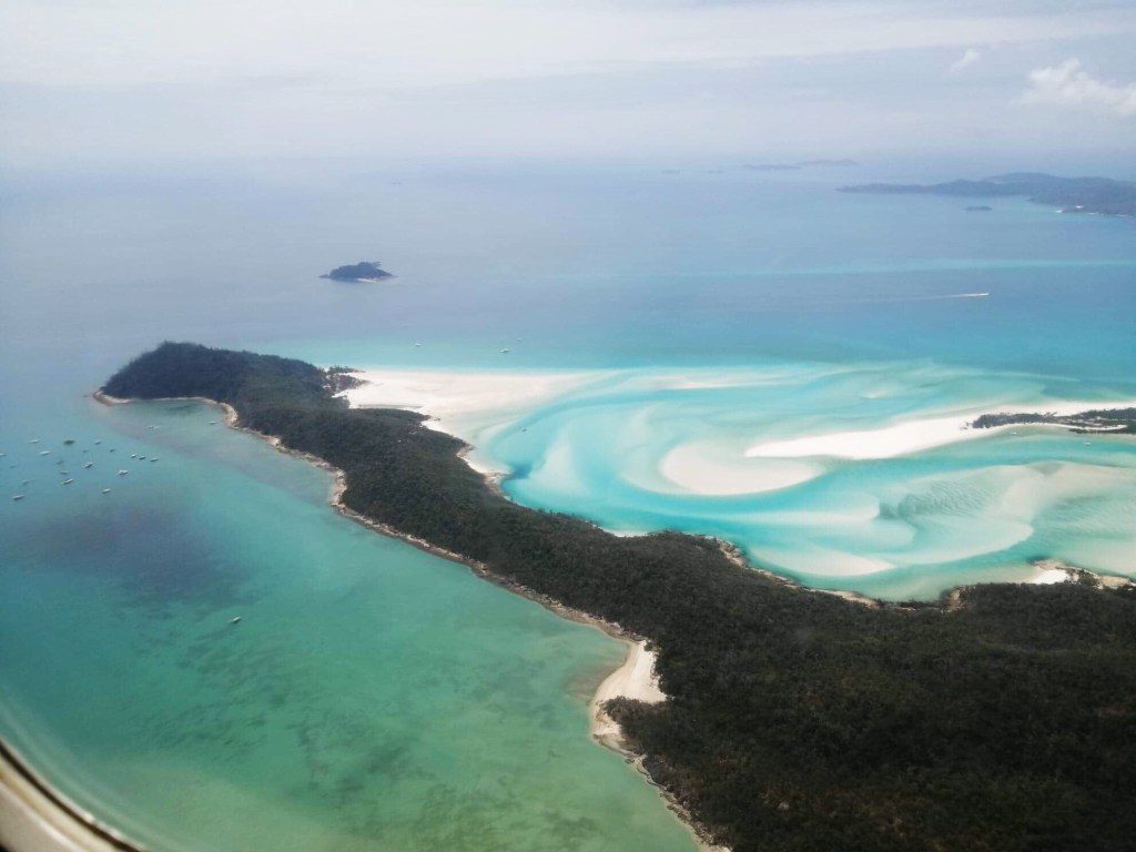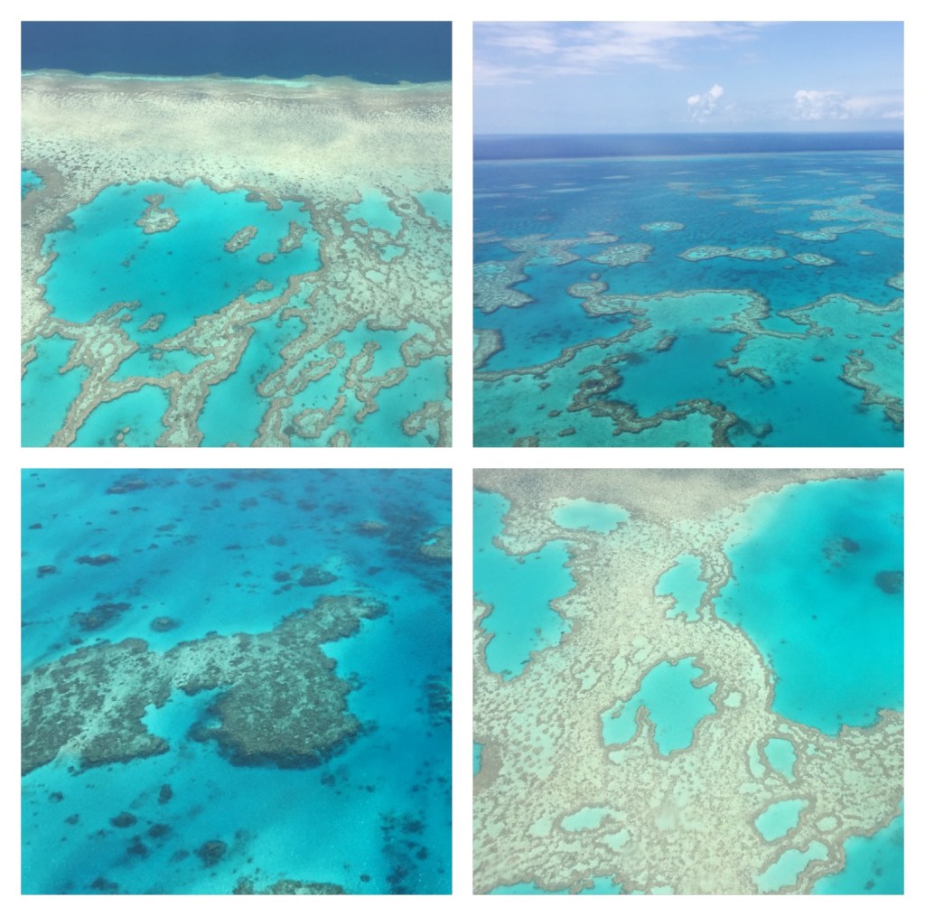 Les bancs de sables blanc se mêlant aux eaux turquoise dans une sorte de marbrure délicate ressemblent à un immense tableau d’aquarelle. L’avion fait deux passages et se dirige ensuite vers la Great Barrier Reef. L’océan est d’un bleu profond, hypnotisant. Jusqu’à ce que…