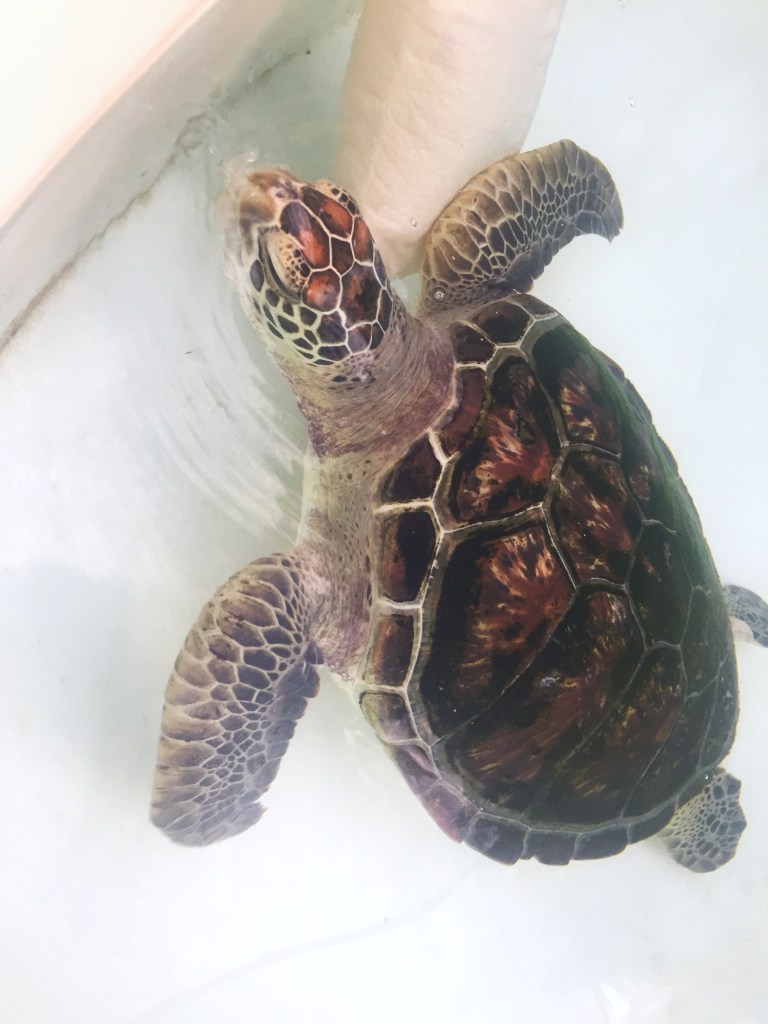 La seconde tortue a un syndrome dont j’avais déjà entendu parlé, mais que je n’aurais peut-être pas su reconnaître : le syndrome de flottaison. Une poche d’air s’est formée dans sa carapace, ce qui l’empêche de plonger pour se nourrir et qui fait d’elle une proie facile. Ce syndrome est souvent dû à une malnutrition et de ce que j’ai compris, est compliqué à soigner. Sachez en tout cas que si vous voyez une tortue dont la carapace est complètement émergée et qui reste à la surface plusieurs minutes, ce n’est pas normal.